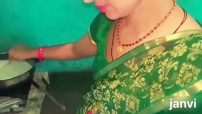 继母在丈夫工作时给继子喂食。