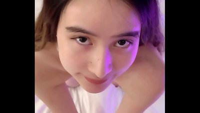 稀薄的亚洲青少年对野生傻瓜的特写和喷涌